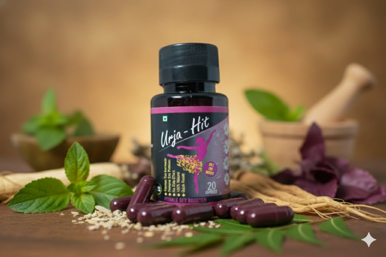 Urja-Hit is a natural women libido booster. It is crafted with herbs traditionally used to support female energy and daily wellness. It also nourishes overall health & balance. It helps in brain calmness and act as an Aphrodisiac.
